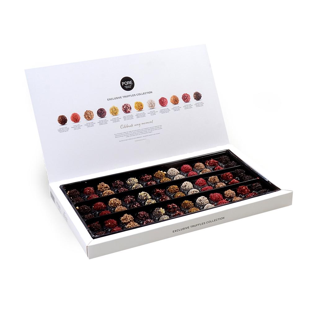 Aceasta cutie imensa cu trufe poate fi un cadou impresionant pentru oricine. Contine 72 de trufe delicioase cu diferite arome: calvados, tiramisu, cirese, cheesecake, caramel, coacaze, portocale, zabaglione, menta si fructul pasiunii.
